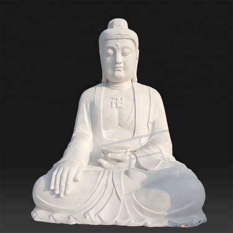 100% hand carved religious stone sculpture white marble amitabha Buddha statue