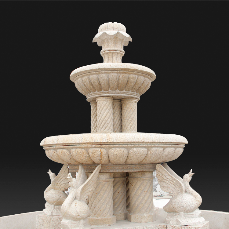 Carved from the gorgeous Egyptian beige marble, this spiral column stone fountain is one of a kind and brings in a distinct element of elegance and beauty. The tiered water feature is simple yet stunning and bears resemblance to the fountains of ancient Roman or Greek civilizations. The 3-layer tall marble fountain with spiral columns will introduce a regal vibe to your garden layout and become a valuable investment in your property. This large garden fountain with pool surround will be a wonderful addition to any modern or contemporary large garden, where it will be the center of attraction and talk of the town. It has been meticulously carved from natural stone, providing a unique texture and grace to the feature that can elevate any design layout instantly. If you have a small or medium-sized garden, you can have it customized in any shape or size to better suit your requirements.